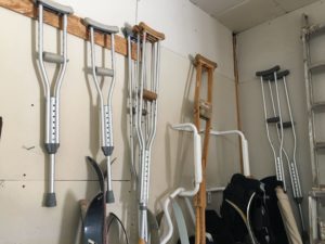 Skis and Crutches -- ONE STOP SHOPPING!